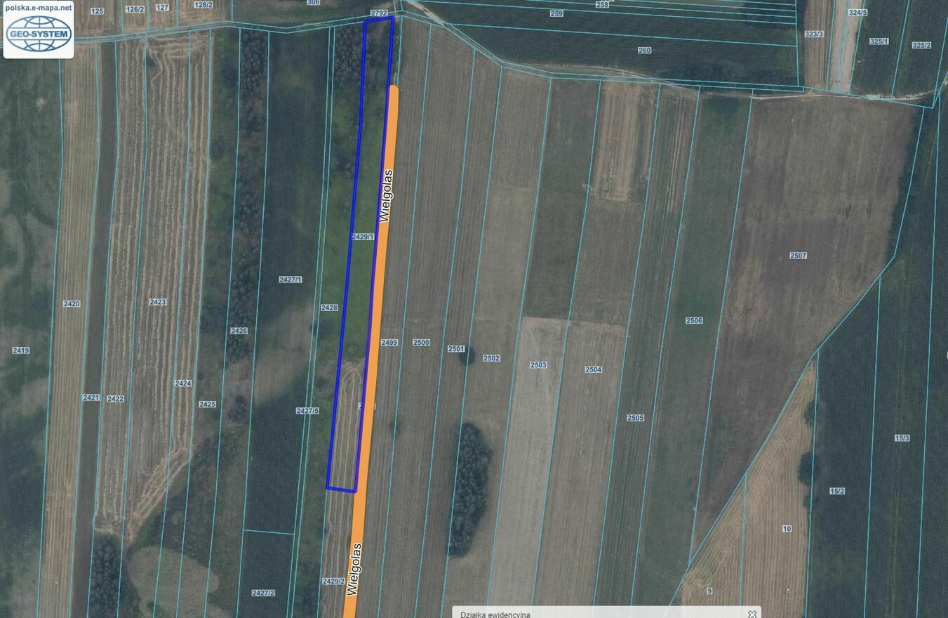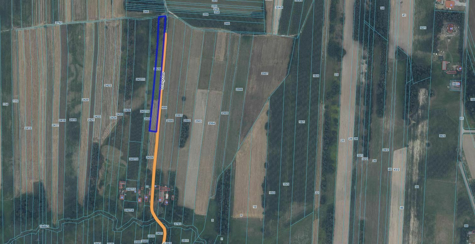 Działka nr 2429/1 w miejscowości Łaskarzew, gmina Łaskarzew, powiat garwoliński. Leży przy samej drodze asfaltowej w odległości około 150m do najbliższych zabudowań i około 80m od linii energetycznej.Wymiary działki: 288x16m.